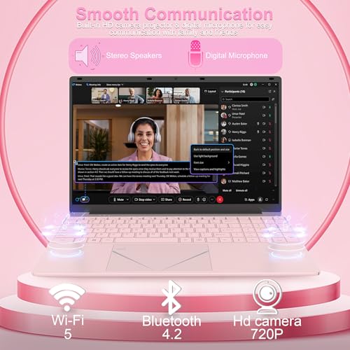15.6”-Ordinateur Portable Rose 16Go RAM 512 Go SSD Laptop PC N95 CPU Computer Touch ID, WiFi5, Bluetooth 4.0, USB 3.0, per studenti, Business e intrattenimento.