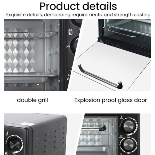 TempéRature Et Minuterie RéGlables: La température de ce mini four électrique est facilement réglable entre 0°C et 250°C, et il dispose d’une minuterie pratique de 0 à 60 minutes pour que vous puissiez régler le temps de cuisson. Important : Évitez de mettre des récipients en plastique dans le four. La chaleur extrême générée par le four peut faire fondre les récipients en plastique, endommageant à la fois le four et le récipient. Aucun préchauffage requis : vous pouvez désormais économiser du temps et de l’énergie, aucun préchauffage requis, le fours posable chauffe rapidement à la température souhaitée grâce à une technologie innovante d’air chaud. Le four utilise une porte en verre collectrice d’énergie à trois couches (couche visuelle/couche antidéflagrante/couche barrière à l’huile), qui isole et empêche efficacement les explosions, résiste aux températures élevées et permet d’observer facilement l’état des aliments, ce qui le rend plus sûr à utiliser. Facile à nettoyer : Le nettoyage est très simple. Qu’il s’agisse de l’intérieur, du gril ou de la plaque de cuisson, nettoyez simplement l’intérieur avec de l’eau propre et le reste passe au lave-vaisselle. Trois modes de chauffage : prend en charge le chauffage du tube supérieur, le chauffage du tube inférieur et le chauffage des tubes supérieur et inférieur en même temps. Vous pouvez choisir librement en fonction des caractéristiques des ingrédients et trouver la meilleure méthode de chauffage pour la cuisson des gâteaux, des pizzas et de la viande. Caractéristiques pratiques : Le petit four electrique posable présente des détails impressionnants et un intérieur spacieux pour votre pizza préférée ou une double porte vitrée. La porte vitrée de ce four électrique vous permet de surveiller à tout moment l’état de cuisson de vos aliments, et grâce à son design intemporel, il s’intégrera dans n’importe quelle cuisine. Polyvalence : Le four d’une capacité de 22L répond aux besoins d’une famille de 3 à 5 personnes. Le corps compact permet d’économiser de l’espace et constitue un choix économique pour les débutants ou les amateurs de pâtisserie. . Les dimensions du four sont de 43*32*27,5 cm et pèse 3800 grammes. Ne touchez pas la vitre du four pendant que celui-ci fonctionne ; sinon vous risquez de vous brûler.