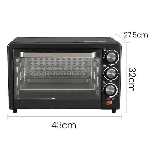 22L 800W Four Electrique, Mini four électrique, Four électrique Posable avec Fenêtre de Visualisation, avec Grille et Plateau,Thermostat Réglable Jusqu’à 250° C, Tournebroche, Minuteur 60 Min (22L)