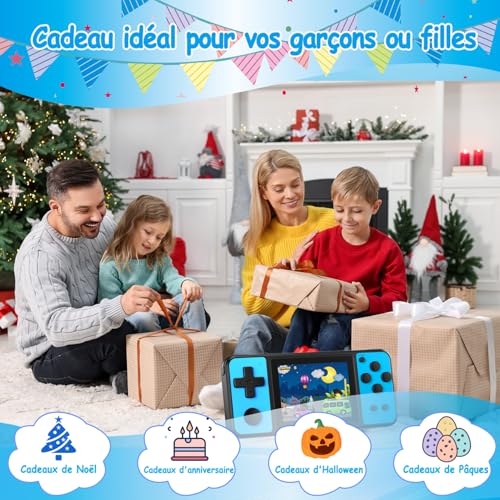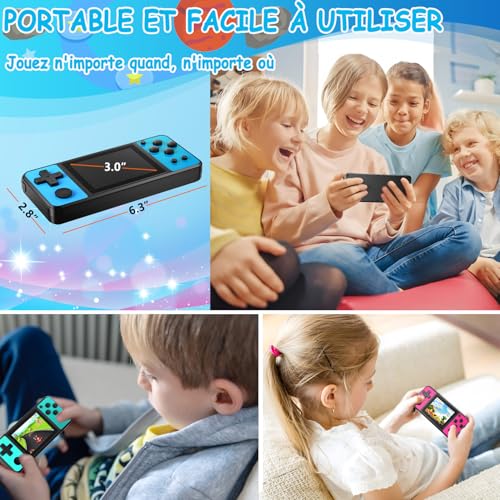 139 Jeux Vidéo 32 bits Géniaux pour Les Enfants: Avec 139 jeux vidéo 32 bits soigneusement sélectionnés préinstallés, les consoles de jeux portables Aojiao sont conçues pour emmener les plus petits dans un voyage passionnant et amusant. Des jeux amusants et décontractés aux casse-têtes, en passant par les défis sportifs et les jeux de tir, cette console de jeux portable offre un divertissement sans fin aux enfants Écran IPS vibrant plus grand de 3,0 pouces: La console de jeux vidéo est équipée d’un écran IPS de 3 pouces avec une interface graphique claire et nette pour une expérience de jeu immersive fluide et agréable. Que ce soit en déplacement ou à la maison, les images éclatantes offrent aux enfants une expérience de jeu exceptionnelle Batterie rechargeable pour une expérience de jeu ininterrompue: Dites adieu aux piles jetables! Notre mini console de jeu portable est équipée de batteries rechargeables qui peuvent être facilement rechargées via un câble USB. Avec plus de 5 heures d’autonomie en mode jeu après une charge complète, c’est le compagnon de voyage idéal Design de mode innovant: Dotée d’un design innovant et ergonomique, cette console de jeu compacte et légère tient parfaitement dans les petites mains pour des heures de jeu confortables. Le joystick de style arcade offre une précision extrême, tandis que les couleurs magnifiques et éclatantes, inspirées de la nature, allient nostalgie et charme contemporain Le cadeau idéal pour les enfants: Grâce au guide détaillé fourni dans le manuel d’utilisation, votre enfant maîtrisera chaque jeu en un clin d’œil. C’est le cadeau idéal pour les anniversaires, Noël, Pâques et autres occasions spéciales. Il ravira et surprendra votre enfant avec une joie sans limite