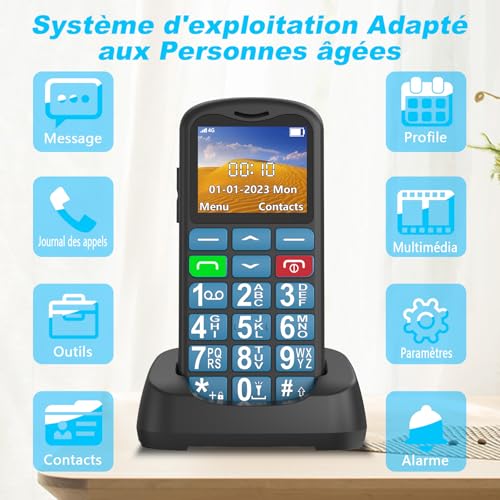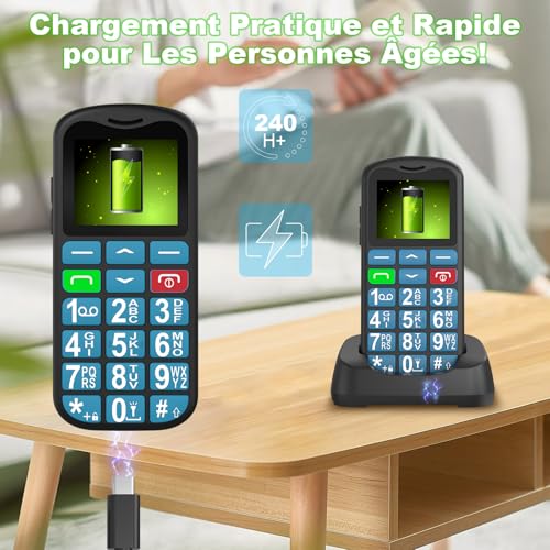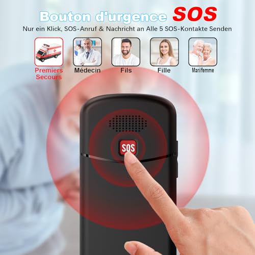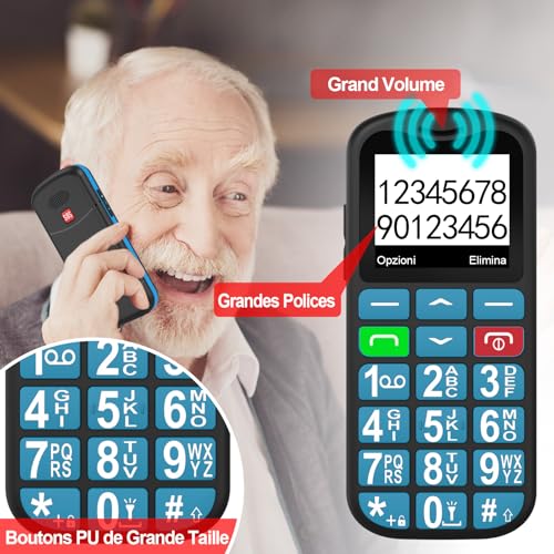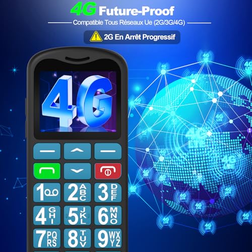 【À l’épreuve du futur | Téléphone Mobile Senior Débloqué 4G】Ce telephone portable senior debloqué prend en charge le réseau 4G avec une excellente réception et est compatible avec tous les opérateurs 4G en Europe comme O2, EE, Vodafone, Orange, Three Network, ID mobile, Smarty, etc. Emplacement pour une seule nano-SIM. Prise de charge USB-C. Important : les réseaux 2G et 3G seront désactivés en Europe! 【Téléphone Portable Personne Âgée | Utilisation facile】Passez à un T180 telephone portable senior 4Gconvivial avec un écran de 1,7 pouce, un système d’exploitation simplifié, des polices agrandies et des icônes de menu claires. Son extra puissant et haut-parleurs cristallins. Idéal pour les personnes âgées, les enfants et les malvoyants. 【Fonctions importantes】Ce simple telephone est intégré : Lecteur MP3, lecture vidéo, Bluetooth, radio FM, calculatrice, réveil, calendrier et mémoire pour 100 contacts. Parfait pour les seniors, les enfants et les utilisateurs malvoyants. Prend en charge l’allemand, l’anglais, l’italien, l’espagnol, le français, le portugais et le néerlandais. 【Bouton SOS d’urgence pour la sécurité】Ce téléphone portable basique dispose d’un bouton SOS dédié qui envoie immédiatement des alertes et appelle automatiquement 5 contacts d’urgence avec un message vocal. Idéal en cas d’urgence ! Comprend également des touches de numérotation rapide (2-9) pour un accès facile aux contacts fréquents. 【Autonomie longue durée】Équipé d’une batterie haute performance de 1000 mAh, ce téléphone portable a touche robuste offre 240 heures en veille ou 180 minutes d’appel. La batterie lithium améliorée se charge plus vite, dure plus longtemps et garantit la sécurité. 【Contenu du colis & Service client fiable】Contenu : 1xtelephone portable simple senior, 1x batterie, 1x chargeur USB-C, 1x station de charge, 1x manuel d’utilisation. Pour toute question, contactez Ufferson – nous offrons un service client 24/7 avec des solutions rapides. Melephone garantit une expérience d’achat sans souci!