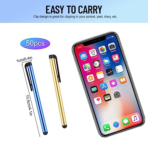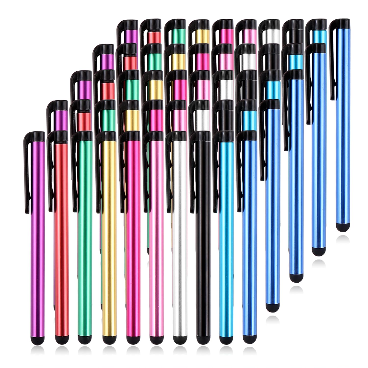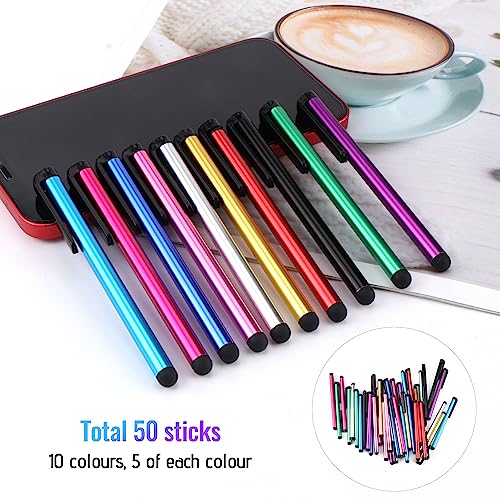 Utilisation polyvalente: nos crayons d’entrée capacitifs avec tous les appareils à écran tactile universel, y compris le pad, le téléphone, le kindle, les tablettes et tous les appareils équipés d’un écran tactile capacitif. Ultra sensible: tête en caoutchouc souple de haute qualité pour une réaction très sensible, la réaction tactile est meilleure que votre doigt, même si vous portez des gants ou des mains avec de longs ongles. Scratch et résistance aux empreintes digitales: les épingles de stylet ont la pointe en caoutchouc souple exquise, ce qui empêche votre écran de gratter et aucune empreinte digitale ne reste. Facile à transporter: il est léger et compact. La conception du clip est idéale pour suspendre votre poche, iPad, journal intime, etc. Quantité suffisante: Le stylet est disponible en 10 couleurs, y compris le noir, l’argent, le violet, le bleu ciel, l’or, le rose, le rouge rose, le rouge, le vert et le bleu foncé, 5 pièces par couleur et 50 pièces au total, grande quantité pour vous et remplacer.