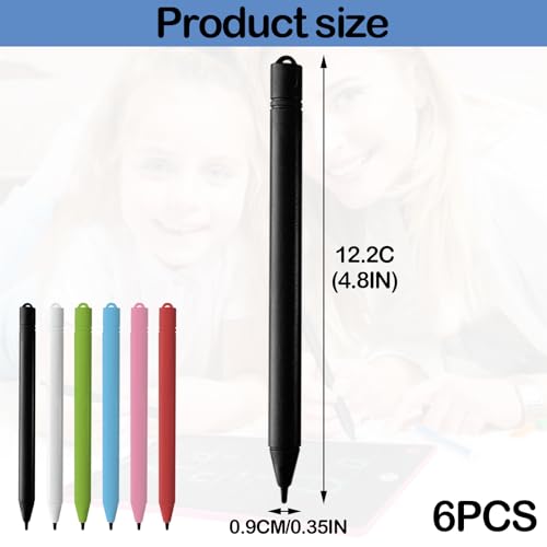 【Stylet de remplacement pour stylo à dessin magnétique】Ce stylet pour tablette n’a pas besoin d’être chargé et peut être utilisé à tout moment et n’importe où, ce qui en fait un outil pratique. 【Stylo à dessin LCD】Disponible dans une variété de couleurs, dont le noir, le bleu, le rose, le blanc, le vert et le rouge. L’apparence colorée peut attirer l’attention de plus de personnes, et la quantité suffisante peut répondre à votre utilisation quotidienne et à votre remplacement. 【Stylo pour tablettes d’écriture LCD】Notre stylet pour tablette d’écriture LCD vous offre une expérience d’écriture et de dessin fluide, adaptée aux tablettes d’écriture LCD. 【Stylos pour tablette graphique】Le dessus de chaque stylet pour tablette a un design perforé. Vous pouvez attacher une corde anti-perte pour ne pas avoir à vous soucier que votre enfant laisse tomber le stylo. 【Stylet pour tablette LCD】La surface lisse et sûre convient aux petits joueurs, ce qui peut favoriser leur capacité d’apprentissage et leur enthousiasme pour l’apprentissage.