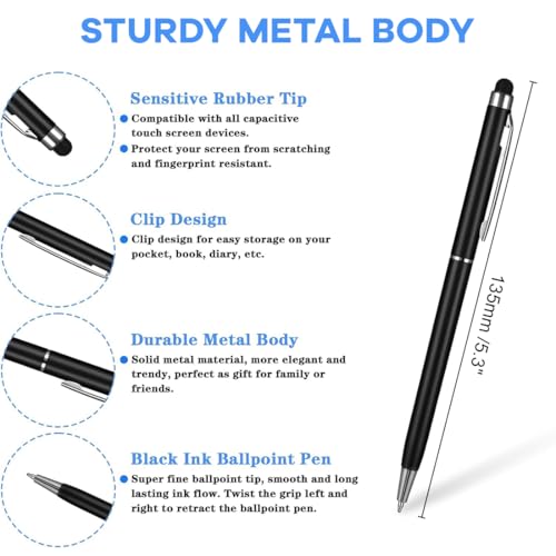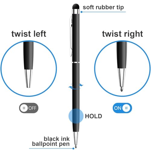 CONCEPTION À DOUBLE TÊTE: Stylo à bille au design deux en un avec stylo à bille noir : une extrémité est équipée d’une pointe en caoutchouc haute sensibilité et l’autre extrémité est équipée d’un stylo à bille lisse et durable, confortable à utiliser. Signez sur écran/papier sans changer de stylo.…