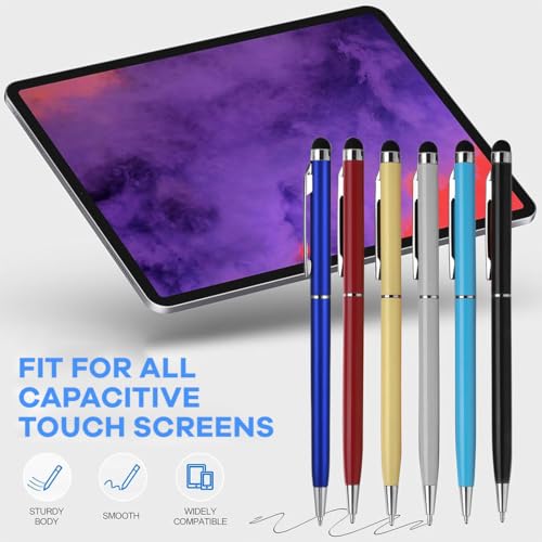 CONCEPTION À DOUBLE TÊTE: Stylo à bille au design deux en un avec stylo à bille noir : une extrémité est équipée d’une pointe en caoutchouc haute sensibilité et l’autre extrémité est équipée d’un stylo à bille lisse et durable, confortable à utiliser. Signez sur écran/papier sans changer de stylo. stylet tablette, partagez-le avec vos amis ou collègues. Excellent cadeau pour Noël, anniversaire, fête des pères, fête des mères. REMPLACEMENT PARFAIT DES DOIGTS: Aucune pile ni Bluetooth requis. Ce stylet pour tablette mesure environ 13,5 cm de long, est ultra-léger et confortable à tenir. Idéal pour les utilisateurs ayant de gros doigts ou des difficultés de motricité fine, en particulier pour taper sur de petits claviers de smartphone. Le stylet tablette samsung est idéal pour les enfants et les personnes âgées qui ont des difficultés à taper sur leur téléphone ou leur tablette. MATÉRIAU DE HAUTE QUALITÉ: Lisse et sensible, fabriqué en silicone de haute qualité, avec une excellente résistance à l’usure et anti-âge. L’embout en caoutchouc souple ne rayera pas l’écran et ne laissera pas d’empreintes digitales comme vos doigts. Le stylet est idéal pour les utilisateurs ayant des ongles longs ou de gros doigts, ce qui facilite la navigation sur l’écran, l’écriture, la prise de notes et les jeux. LARGE COMPATIBILITÉ: Le stylet universel est compatible avec tous les téléphones portables capacitifs, tablettes, ordinateurs portables à écran tactile et liseuses. Par exemple, les stylet tablette iPad/iPhone/Apple Watch/Galaxy/Xiaomi/Huawei/Kindle, etc., peuvent être utilisés sur l’écran sans avoir besoin des doigts. EMBALLAGE INCLUS: 6 stylets, boîtier en aluminium léger avec porte-stylo, facile à transporter. Tournez le corps du stylo pour le plier. Il peut être placé dans des poches, des livres, des journaux, etc. Peut également être placé dans un porte-stylo. stylet tablette samsung, pour les utilisateurs avec des doigts plus grands et une meilleure motricité fine, ce stylet pour téléphone portable est très pratique sur le petit clavier du téléphone portable.
