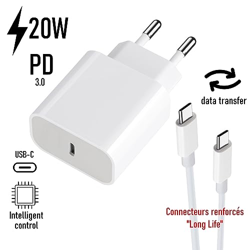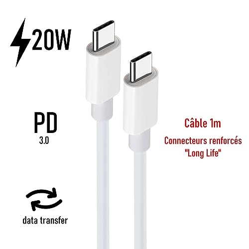 Ce chargeur secteur 20W avec câble USB-C PD 3.0 est un adaptateur rapide et fiable, conçu pour offrir une recharge puissante à vos appareils. Son design blanc moderne et compact le rend pratique et élégant. Il permet de recharger rapidement vos smartphones, tablettes ou liseuses grâce à la technologie PD 3.0. Sa puissance de 20W garantit un gain de temps important tout en assurant une utilisation sécurisée au quotidien. Ce chargeur combine une charge rapide 20W, une compatibilité universelle et un design compact. Grâce à son câble USB-C inclus, il constitue une solution complète et pratique pour vos besoins de recharge à la maison comme en déplacement. Compatible avec Doro Aurora A10 , A30 / Leva L30 , L10 , L20 Puissance : 20W – Technologie PD 3.0 – Port USB-C – Entrée : 100-240V – Sortie optimisée pour charge rapide – Câble USB-C de 1 m inclus – Couleur : blanc – Design compact et portable – Protection contre surchauffe et surtension. Compatible avec la majorité des smartphones, tablettes, liseuses et appareils électroniques utilisant un port USB-C (aussi appelé Type C ou Type-C ). Convient à la plupart des appareils récents nécessitant une recharge rapide et fiable. Le petit + produit : Power Delivery 3.0 Votre envoi contiendra 1 Chargeur USB-C + Câble USB-C / USB-C 1m en 1 exemplaire(s) Chargeur de bureau Blanc bénéficant de 2 ans de garantie Branchez le chargeur sur une prise secteur, connectez le câble USB-C fourni à votre appareil, et la recharge démarre immédiatement. Sa petite taille le rend idéal à utiliser à la maison, au bureau ou en déplacement.