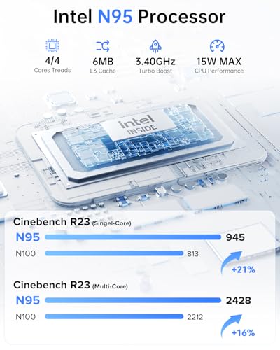 🔹[CPU : N95] – Le Mini PC V1 est équipé du tout nouveau processeur Alder Lake-N Ν95 (4 cœurs/4 threads, 6 Mo de cache Intel Smart, jusqu’à 3,6 GHz). Avec une remarquable efficacité énergétique de 15 W, il surpasse ses prédécesseurs et rivalise même avec certains processeurs mobiles courants du…