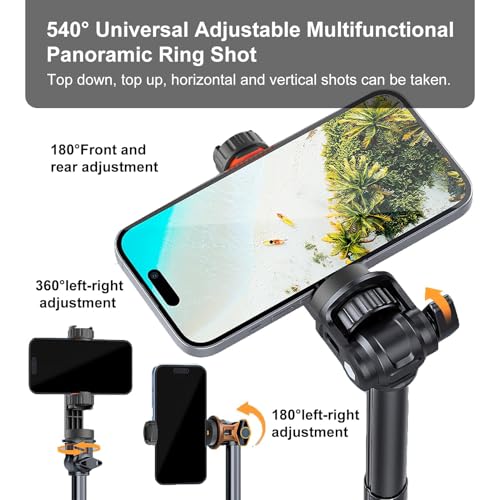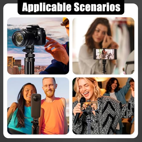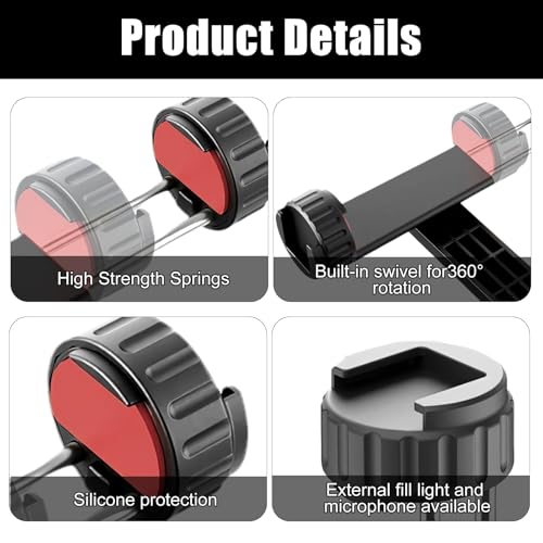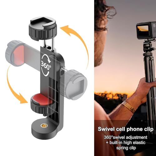 【2 Connecteurs de chaussure froide standard】L’adaptateur trépied smartphone est équipé de 1 connecteur de chaussure froide standard, permettant d’attacher des appareils externes ou des accessoires tels que des lumières de remplissage et des microphones. De plus, la chaussure froide est facilement rotative pour ajuster l’angle de l’appareil de manière optimale. 【1/4 pouce filetage】Le support téléphone trépied dispose d’un orifice fileté standard de 1/4 pouce, compatible avec les trépieds, les sticks selfie, les monopodes, les caméras, les stabilisateurs et autres accessoires équipés d’une vis de 1/4 pouce. 【Rotation de 360°】Le support smartphone trépied peut être tourné de 360 degrés. Contrairement aux supports de trépied pour smartphone traditionnels, notre pince pour téléphone dispose d’un design d’angle ajustable, permettant de régler l’inclinaison à volonté sur le trépied ou la fixation de caméra, ce qui rend l’utilisation plus confortable et plus simple. 【Universel】Ce support telephone trépied avec filetage dispose d’une pince à ressort haute élasticité, pouvant s’adapter de 5,5 à 8,5 cm pour fixer votre appareil sur n’importe quel trépied. En même temps, des coussinets en silicone antidérapant épais protègent votre téléphone et garantissent une prise ferme. 【Durabilité】Le trepied telephone portable est fabriqué en plastique ABS de haute qualité et en silicone souple pour assurer une robustesse et une longévité. Avec un poids de seulement 44 grammes, il est facile à utiliser et à ranger, et l’adaptateur trépied smartphone est parfait pour prendre des photos, des vidéos, des vlogs et des diffusions en direct.