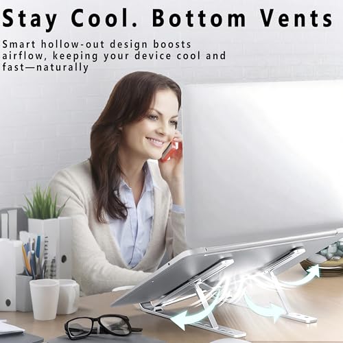 【Support pc Portable – Réglage à 6 Vitesses】 Vous pouvez régler la hauteur et l’angle confortables, conçus de manière ergonomique, faciles à regarder et à taper, tout en corrigeant la posture assise, en réduisant la fatigue du cou ou les maux de dos. 【Matériel – Alliage D’aluminium】 Support ordinateur portable est fabriqué en alliage d’aluminium épaissi de haute qualité, de sorte que le support est ferme et stable, et il peut supporter le poids de l’ordinateur plus fermement. 【4 Patins en Caoutchouc Antidérapants】 Le support pour ordinateur portable glisse vers le bas et les quatre patins en caoutchouc antidérapants au bas du support peuvent mieux vous protéger contre les glissades lorsque vous utilisez le support d’ordinateur sur le bureau. 【Support pour Ordinateur Portable – Ventilation et Dissipation de la Chaleur】 Le support pour ordinateur portable en alliage d’aluminium a une conception creuse en bas, et la conception de ventilation ouverte en bas offre une meilleure dissipation de la chaleur de l’ordinateur. 【Ordinateurs Portables de Différentes Tailles】Support pc portable convient à tous les ordinateurs portables de 8 à 16 pouces, facile à ranger et prend très peu de place; Pratique à transporter, vous pouvez le mettre dans un sac à dos ou un sac.
