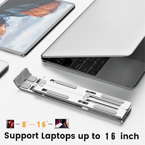 AiTodos® Support Ordinateur Portable, Alliage D’aluminium, Léger, Compact Portable Pliable – Ventilation et Dissipation de la Chaleur, Réglage à 6 Vitesses – Support pc Portable (Argent)