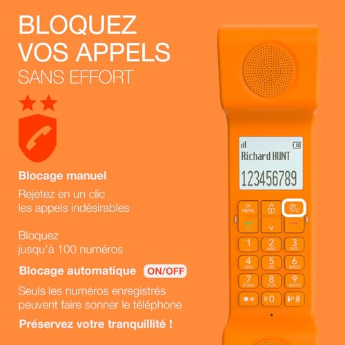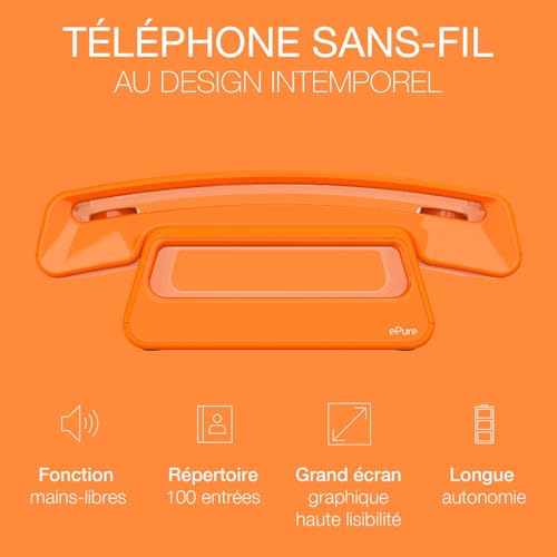UN DESIGN ICONIC : Inspiré d’un téléphone fixe vintage, le Alcatel ePure Iconic sans fil apporte une touche de décoration tendance. Son grand écran graphique rétroéclairé sur 3 lignes, ses gros caractères et son menu intuitif offrent une interface utilisateur simple. HAUT-PARLEUR À VOLUME RÉGLABLE : Le haut-parleur au volume réglable de votre téléphone sans fil vous permet de continuer votre conversation tout en ayant les mains libres pour pouvoir vaquer à vos occupations. RÉPERTOIRE PERFORMANT : Grâce au répertoire, vous pouvez stocker jusqu’à 100 noms et numéros dans votre téléphone. Associez des sonneries différenciées à vos contacts VIP pour les reconnaître dès qu’ils vous appellent. FONCTION BLOCAGE D’APPELS : Bloquez jusqu’à 100 numéros grâce à une touche dédiée, ou avec le mode automatique pour bloquer tous les numéros sauf ceux du répertoire. Accédez rapidement à vos contacts fréquents grâce aux 3 touches d’appel direct programmables. LEADER DE LA TÉLÉPHONIE : Marque d’origine française spécialisée dans les télécommunications, Alcatel est l’un des leaders mondiaux dans le domaine de la téléphonie.