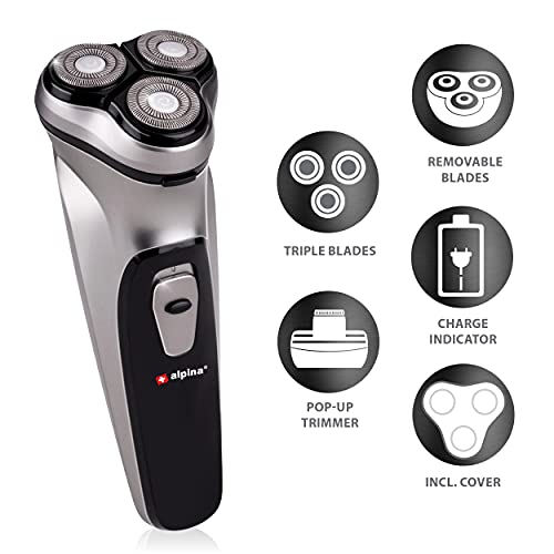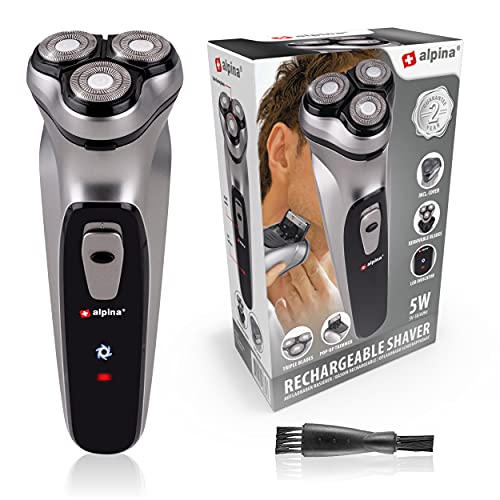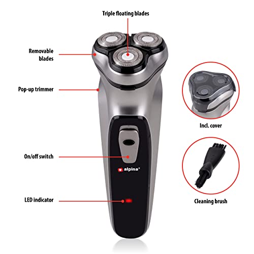 TONDEUSE BARBE HOMME PAR USB – ce rasoir sans fil d’alpina vous donnera rapidement une apparence fraîche et rasée de près. Vous le chargez avec un câble USB. TONDEUSE BARBE – l’appareil pour homme dispose de 3 têtes de rasage flottantes et est également équipé d’une tondeuse pop-up. TONDEUSE ELECTRIQUE – Avec le rasoir, vous recevez un câble de chargement USB, un capuchon de protection et une brosse de nettoyage avec lesquels vous pouvez facilement nettoyer le rasoir électrique. TEMPS D’UTILISATION DE 45 MINUTES – Charger ce rasoir est un jeu d’enfant avec le câble de charge fourni. Il ne faut qu’une heure pour que l’appareil se charge complètement. TONDEUSE À BARBE AVEC ACCESSOIRES – La tondeuse escamotable est située à l’arrière de l’appareil et peut être dépliée. Après utilisation, il suffit de le replier dans le rasoir.