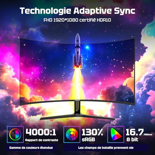 Performance Gaming Inégalée : Profitez d’un taux de Rafraîchissement Ultra-rapide de 240Hz et d’un Temps de Réponse de 1 ms MPRT pour des Mouvements Fluides et Précis, Idéal pour les jeux Compétitifs. La Technologie Adaptive Sync élimine les Saccades et les Déchirures D’écran. Immersion Totale avec Écran Courbé VA :…