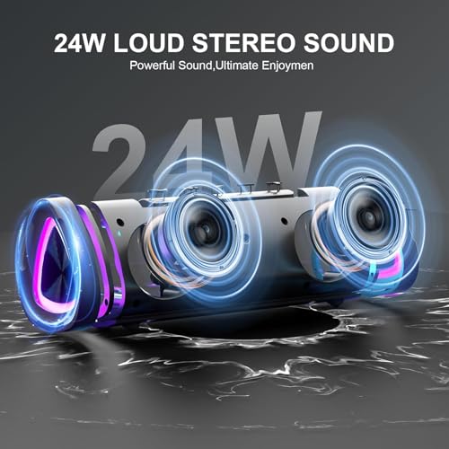 aowoka 2025 Enceinte Bluetooth Portable sans Fil avec Lumière LED, Bluetooth 5.4, 24 hrs, Basses Puissantes, Surround Stéréo, Étanche IPX7, Idéal pour Les Voyages/Sport/Fêtes/Cyclisme