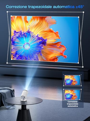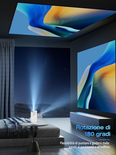 【Résolution HD 1080p et Android 11】 Plongez au cœur d’images époustouflantes grâce à la résolution haute définition 1920 x 1080p de notre projecteur. Ce projecteur portable intègre Android 11 et plus de 5 000 applications, vous offrant un accès facile à une multitude de contenus. 【Correction trapézoïdale automatique +45° et écran jusqu’à 200 pouces】 Fini les réglages manuels ! Notre projecteur propose une correction trapézoïdale automatique de ±45°, garantissant une image parfaitement alignée quel que soit l’angle de vision. Appréciez chaque détail et des couleurs éclatantes sur un écran jusqu’à 200 pouces, pour des soirées cinéma ou des sessions de jeu inoubliables. 【Wi-Fi 6 double bande fluide】 Restez connecté en toute fluidité grâce à la dernière technologie Wi-Fi 6, compatible avec les réseaux 2,4 GHz et 5 GHz. Le Wi-Fi 6 assure une diffusion fluide sur les appareils iOS, Android et Windows, offrant une transmission plus rapide et plus stable que les réseaux Wi-Fi 2,4 GHz et 5 GHz traditionnels. 【Projection rotative à 180°】 Transformez n’importe quelle surface en un écran de cinéma ! Notre projecteur pivote en douceur pour projeter sur les murs, les plafonds ou même le sol. Profitez d’une expérience visuelle immersive sous tous les angles dans votre maison. 【Connexion Bluetooth 5.2 et haut-parleur Hi-Fi】 Grâce à son haut-parleur Hi-Fi intégré de 3 W, plongez au cœur d’un son exceptionnel. Connectez des écouteurs, des enceintes et d’autres appareils via Bluetooth pour profiter d’un son surround digne d’une salle de cinéma, chez vous.