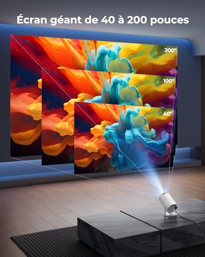 | Divers | Application intégrée, Supporte 4K, Courte focale, 180° Rotation, Auto Keystone 45°,WiFi 6, Bluetooth 5.4, Système de refroidissement intégré, Portable |