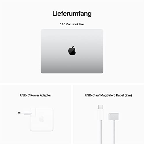 Apple 2023 MacBook Pro Laptop M2 Pro Chip mit 10‑Core CPU und 16‑Core GPU: 14″ Liquid Retina XDR Display, 16GB Gemeinsamer Arbeitsspeicher, 512 GB SSD Speicher, beleuchtete Tastatur; Silber