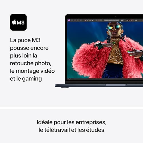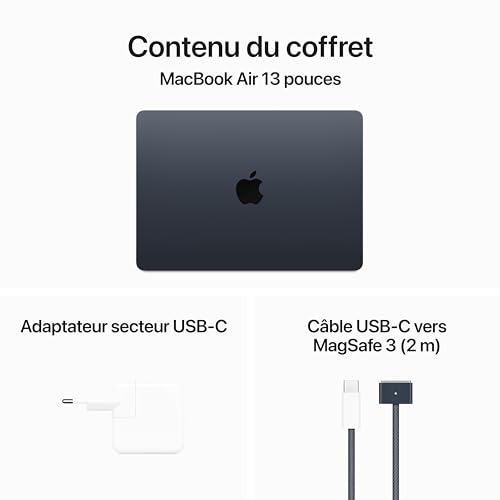 Apple 2024 Portable MacBook Air 13 Pouces avec Puce M3 : écran Liquid Retina 13,6 Pouces, 16 Go de mémoire unifiée, 512 Go de Stockage SSD, Clavier rétroéclairé, caméra FaceTime HD 1080p. Minuit