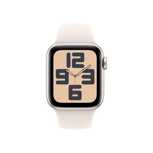 Apple Watch SE (2ᵉ génération) 40 mm GPS Montre connectée avec Boîtier en Aluminium lumière stellaire et Bracelet Sport lumière stellaire (M/L). Suivi activité et Sommeil, détection Accidents