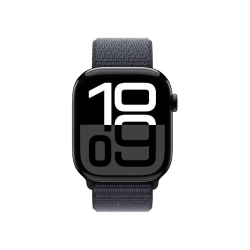 Apple Watch Series 10 (46 mm GPS) Montre connectée avec Boîtier en Aluminium Noir de Jais et Boucle Sport Encre Violette. Suivi de l’activité Physique, app ECG, Neutre en Carbone