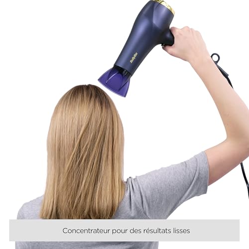 BaByliss Sèche-cheveux Midnight Luxe – Puissance de 2300W, Fonction ionique anti-frisottis, Séchage rapide, Professionnel et léger, 3 réglages de température & 2 réglages de vitesses, 5781PE
