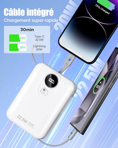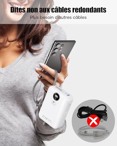 𝐃𝐢𝐭𝐞𝐬 𝐧𝐨𝐧 𝐚𝐮𝐱 𝐜â𝐛𝐥𝐞𝐬 𝐫𝐞𝐝𝐨𝐧𝐝𝐚𝐧𝐭𝐬❌Ce produit a été conçu avec des câbles de type C et Light, et il est capable de charger à la fois vos appareils Apple et Android ! 𝐏𝐥𝐮𝐬 𝐩𝐞𝐭𝐢𝐭 𝐪𝐮’𝐮𝐧 𝐭é𝐥é𝐩𝐡𝐨𝐧𝐞 𝐩𝐨𝐫𝐭𝐚𝐛𝐥𝐞, 𝐦𝐚𝐢𝐬 𝐜𝐚𝐩𝐚𝐛𝐥𝐞 𝐝𝐞 𝐜𝐡𝐚𝐫𝐠𝐞𝐫 𝐩𝐥𝐮𝐬𝐢𝐞𝐮𝐫𝐬 𝐟𝐨𝐢𝐬👜Peut être transporté dans votre poche pour charger votre appareil plusieurs fois à tout moment. 𝟎%-𝟓𝟎% 𝐞𝐧 𝟑𝟎 𝐦𝐢𝐧 (𝐩𝐨𝐮𝐫 𝐯𝐨𝐭𝐫𝐞 𝐭é𝐥é𝐩𝐡𝐨𝐧𝐞) ☕Il suffit d’une tasse de café pour que le chargeur super rapide de 22.5 W redonne de l’énergie à votre appareil. 𝐀𝐩𝐩𝐫𝐨𝐮𝐯é 𝐩𝐚𝐫 𝐥𝐚 𝐀𝐯𝐢𝐚𝐭𝐢𝐨𝐧 𝐜𝐢𝐯𝐢𝐥𝐞 𝐟𝐫𝐚𝐧ç𝐚𝐢𝐬𝐞 (𝐒𝐅𝐀𝐂)✈️20000mAh/77Wh/3.85V -Votre partenaire peut fonctionner normalement dans l’avion. 𝐓𝐨𝐮𝐣𝐨𝐮𝐫𝐬 𝐞𝐧 𝐯𝐞𝐢𝐥𝐥𝐞📩Pour toute question ou besoin, veuillez nous contacter rapidement. Nous nous engageons à répondre à votre e-mail dans les 12 heures et à vous fournir la meilleure solution !