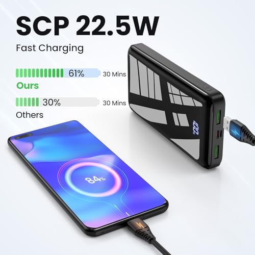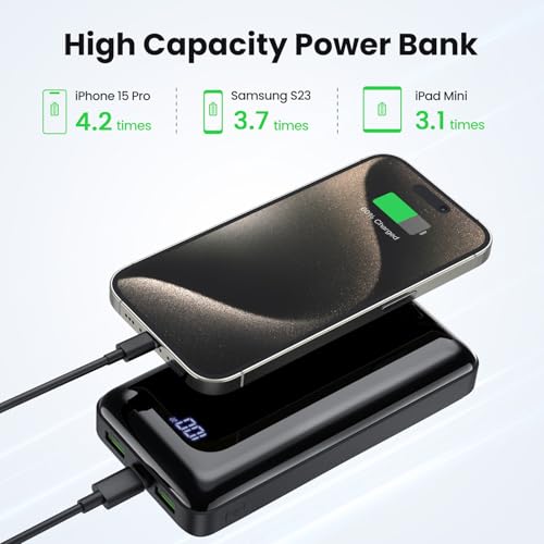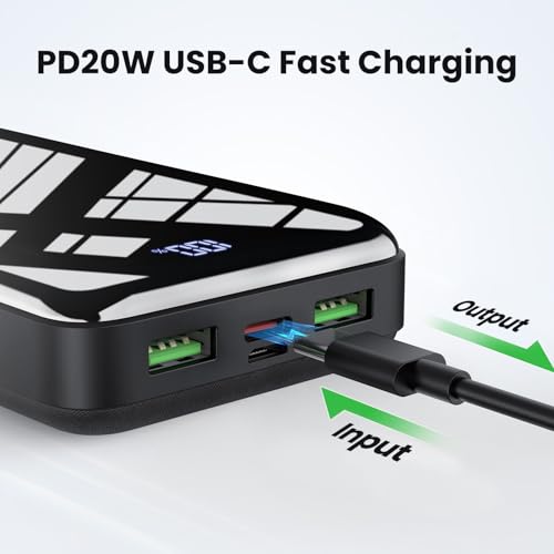 Dernière Charge Rapide 22,5W: Avec la sortie 22,5W la plus avancée et la dernière technologie de charge rapide PD 3.0 et QC 4+, votre nouvel iPhone peut être chargé de 0 à 61% en seulement 30 minutes. Entrée et sortie USB C: Notre batterie externe est conçue avec 3 sorties (une sortie USB C + deux sorties USB), qui peuvent charger 3 appareils en même temps; et 2 entrées (Micro USB + USB C), vous pouvez charger la power bank de manière très flexible. Grande Capacité: La power bank de grande capacité de 27000mAh peut charger vos appareils 3 à 6 fois après avoir été complètement chargée. La capacité suffisante de la batterie peut répondre à vos courts voyages, voyages d’affaires, camping, alpinisme, besoins d’urgence, etc. Affichage LED Intelligent: Grâce à la conception de l’écran LED, vous pouvez connaître la puissance exacte de la batterie. La puissance restante est claire en un coup d’œil, ce qui permet à la chargeur externe de se charger à temps et d’éviter l’embarras d’une panne de courant soudaine. Protection de sécurité intelligente: Le système de sécurité à protection multiple protège votre appareil contre les dommages tels que la surintensité, la surchauffe, la surcharge, les courts-circuits, etc. Ce que vous recevrez : 1 x batterie portable, 1 x câble de charge USB C (adaptateur non inclus), 1 x manuel d’utilisation.