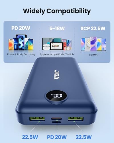 【Expert en Charge Rapide】 Cette batterie externe portable dotée de la dernière technologie de charge rapide 22,5W et PD20W peut recharger deux téléphones à 61% en seulement 30 minutes. 【Grande Capacité】 Grâce à sa grande capacité, cette power bank peut recharger votre téléphone au moins 3 à 5 fois, ce qui la rend idéale pour les besoins de charge d’appareils d’une famille. 【3 Ports Sortie et 2 Ports Entrée】 La batterie externe dispose de 2 sorties USB-A de 22,5W et d’une sortie USB-C de 20W, permettant de charger 3 appareils simultanément. Idéale pour le travail, les voyages et les sorties nocturnes. 【Compatibilité Universelle】 Cette chargeur portable est compatible avec les iPhone, Google Pixel, les smartphones et autres appareils tels que les écouteurs, les bracelets connectés, les montres connectées, les caméras GoPro, etc. 【Affichage Intelligent】 Un affichage numérique précis est intégré au chargeur externe, permettant de visualiser facilement la charge restante. La fonction de charge rapide garantit une charge rapide et sûre.