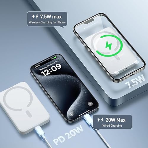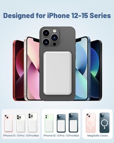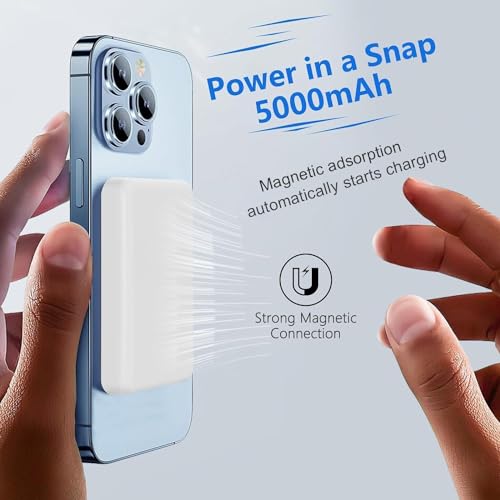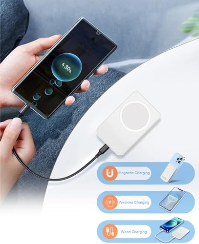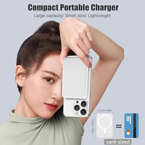 Magnétisme puissant et grande compatibilité : batterie externe avec la dernière technologie magnétique (magnétisme le plus fort et nano-adsorption), fixation magnétique super forte à l’arrière de votre iPhone : iPhone 16/15/14/13/12, iPhone 14/13/12 Pro, iPhone 16/15/14/13/12 Pro Max, iPhone 14 Plus, iPhone 12/13/14/15/16 mini . Ultrafine et dissipation de la chaleur du graphène : la dernière version de la batterie externe sans fil magnétique a un design très compact. Cette batterie externe sans fil est parfaitement adaptée aux besoins des utilisateurs d’iPhone et n’affecte pas l’objectif de l’appareil photo de votre iPhone. La coque en métal avec design graphique de la batterie externe sans fil magnétique contribue à améliorer considérablement les performances de dissipation de la chaleur, ce qui permet une utilisation beaucoup plus sûre pendant la charge. Charge rapide et performances au format de poche : alignez votre iPhone et la batterie en un clin d’œil. Dites adieu aux problèmes de connexion dus à un mauvais alignement lors du chargement sans fil. La batterie est assez fine pour la fixer au téléphone et la mettre dans votre sac à dos, sac à main ou poche. Magnétisme puissant et activation rapide : la batterie externe sans fil intègre un aimant pour assurer une charge magnétique stable, tandis que le chargeur antidérapant sur l’appareil permet à la batterie de se connecter plus fermement à l’iPhone et protège le téléphone des rayures. Pas besoin d’appuyer sur un bouton : l’aimant se fixe instantanément et active automatiquement la charge. Protection de la batterie et sécurité garantie : cette batterie externe magnétique est équipée d’une puce intelligente de haute qualité, d’un système intelligent intégré et d’un circuit de sécurité, pour prolonger la durée de vie de la batterie et protéger les appareils.