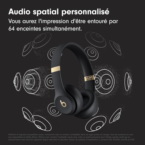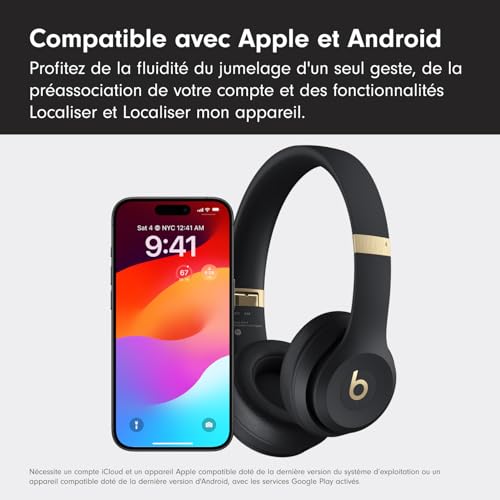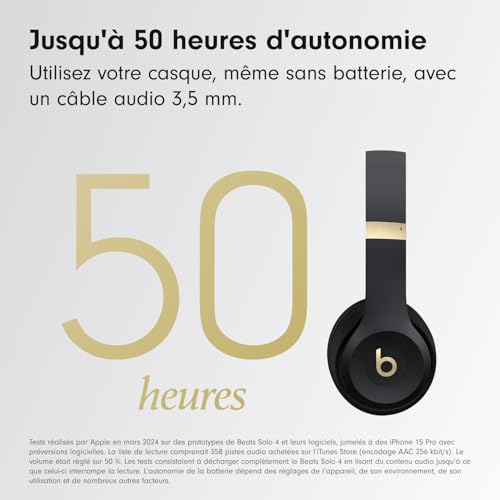 Beats Solo 4 – Casque Supra-auriculaire sans Fil Bluetooth, Apple et Android Compatible, 50 Heures d’autonomie – Noir et Or