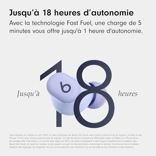 Beats Solo Buds – Écouteurs Bluetooth sans Fil | 18 Heures d’autonomie | Compatibilité Apple et Android | Microphone intégré – Mauve Polaire
