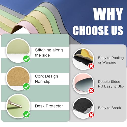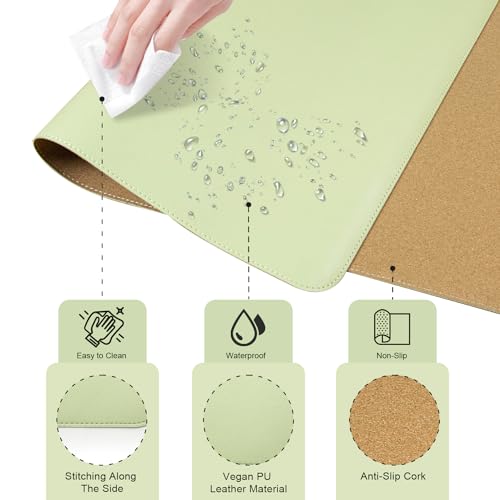 🌼🌼Tapis de Protection Supérieure pour Bureau : Cuir PU durable et matériau en liège, fournissent une protection fiable pour la surface de votre bureau. Protégez votre table de travail de l’usure quotidienne avec notre tapis de bureau double face. Ce grand tapis de souris et tapis de bureau combo est une barrière protectrice, empêchant les rayures, les éraflures et les déversements d’endommager votre espace de travail. 🌷🌷Conception Antidérapante pour une Meilleure Stabilité : Dites adieu au glissement et à la glissade avec le tapis de souris BLESWIN large. La base en liège naturel maintient le tapis de clavier bien en place, même pendant la frappe, l’écriture et l’utilisation intenses. Profitez d’une surface stable pour votre tapis protecteur de bureau, permettant des mouvements précis et une meilleure efficacité. 🌻🌻Imperméable et Facile à Nettoyer : Notre tapis de bureau en cuir est spécialement conçu pour gérer les déversements ou les désordres pendant l’utilisation. Fabriqué avec une combinaison de cuir PU imperméable et résistant aux taches, ces grands sous-mains peuvent être facilement nettoyés avec un chiffon humide, assurant une expérience d’entretien sans tracas. Conçu avec des coutures latérales pour éviter le décollement. 🌸🌸Tapis pour Ordinateur Portable Stylish Elegance : Ce grand tapis de souris ajoute une touche de sophistication tout en améliorant la fonctionnalité de votre bureau. Avec ses caractéristiques élégantes et fonctionnelles, c’est un accessoire indispensable pour ceux qui accordent de l’importance à la beauté et à la praticité. Améliorez votre bureau avec ce tapis d’ordinateur et découvrez le mélange parfait de style et de protection. 🎀🎀Tapis de Souris de Bureau à Usage Polyvalent : Tapis de souris et de clavier en 5 tailles et 10 couleurs. Une sangle de rangement portable vous permet d’enrouler le tapis de bureau et de l’emporter avec vous. Il peut accueillir un ordinateur portable, une souris et un clavier, et peut être utilisé comme tapis de bureau, pour écrire et peindre. Un excellent choix pour le bureau et la maison.
