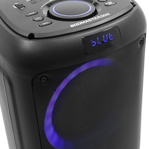 [ SON HAUTE FIDELITE ] : Lorsqu’il s’agit de qualité sonore, cette enceinte Bluetooth professionnelle dépasse toutes les attentes. Elle est équipée de 2 haut-parleurs de grave de 6,5 pouces (16cm) et d’un haut-parleur d’aigu de 2 pouces, pour une puissance maximale de 250 Watts en crête. Sa large gamme de fréquences, allant de 55Hz à 18kHz, offre une reproduction sonore exceptionnellement riche. [ TECHNOLOGIE TWS BLUETOOTH 5.0 ] : Enceinte portable, facile à transporter, intégrant la technologie TWS (True Wireless Stereo) bluetooth 5.0. La fonction TWS permet de connecter deux Boomaster 300 l’une à l’autre, sans utiliser de câble. Le bluetooth 5.0 offre une portée de 10 mètres. Cette technologie assure également une connexion plus stable et rapide, réduisant latences et interruptions. [ LECTEUR MULTI SOURCES ] : L’enceinte bluetooth portable Boomaster 300 est conçue pour être le cœur de votre expérience audio, peu importe la source. Non seulement elle permet de streamer votre musique favorite depuis votre smartphone grâce à sa connexion Bluetooth stable, mais elle peut également jouer la radio FM via le tuner intégré, ou lire vos fichiers mp3 depuis le lecteur USB et carte SD. [ ÉCLAIRAGE LED ] : L’enceinte bluetooth lumineuse Boomaster 300 est également un spectacle visuel en soi. Des LED élégamment intégrées autour des haut-parleurs se mettent en mouvement au rythme de vos morceaux favoris une fois activées. Que ce soit pour un barbecue en plein air, une soirée en intérieur ou un événement spécial, l’éclairage LED contribue à créer une atmosphère dansante ! [ BATTERIE RECHARGEABLE ] : Fonctionnant soit sur alimentation secteur, soit sur une batterie rechargeable, cette enceinte vous accompagne partout. La batterie fournie est particulièrement robuste, offrant jusqu’à 4 heures d’autonomie, ce qui en fait la candidate idéale pour les événements en intérieur ou en extérieur. L’enceinte bluetooth est livrée avec sa télécommande sans fil IR.