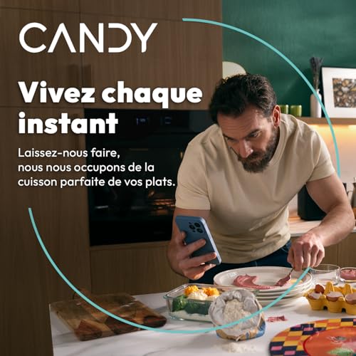 FOUR ELECTRIQUE ENCASTRABLE POUR CUISINE EQUIPEE : Avec un volume généreux de 78 L et des dimensions standards, ce four encastrable Candy s’adapte à toutes les cuisines équipées. Connecté, il est parfait pour les foyers modernes. CLASSE A++ ET CHALEUR TOURNANTE POUR UNE CUISSON MAITRISEE : Classé A++, ce four Candy assure une cuisson homogène et rapide grâce à la chaleur tournante et permet de réduire la consommation énergétique, même lors de cuissons longues ou multiples. 10 FONCTIONS POUR LA CUISSON ET LE NETTOYAGE : Ce four multifonction propose 10 fonctions, dont chaleur tournante, convection naturelle, grill, boulangerie, pizza. Ce four pyrolyse offre également un nettoyage facilité et efficace. MODERNE ET TECHNOLOGIQUE : Esthétique, ce four encastrable est équipé d’un écran digital et d’un système de porte froide sécurisée. Sa connectivité WiFi permet de le contrôler via l’application hOn. ELECTOMENAGER MALIN ET DESIGN : La marque italienne Candy propose des appareils électroménagers intuitifs et dotés de technologies innovantes à un prix abordable, pour simplifier le quotidien de tous.