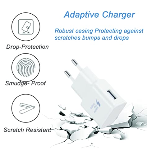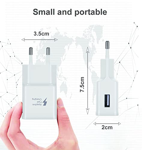 Chargeur rapide AFC : test de charge Galaxy s7 edge, 30 minutes, 44 % de charge, 1 heure 29 minutes, 100 % de charge ; (Remarque : le bord s7 ne prend pas en charge la charge du flash lorsque l’écran est allumé, donc jouer au téléphone pendant la charge prolongera le temps de charge.) Large compatibilité : compatible avec Samsung Galaxy S7, S7 Edge, S6, S6 Edge, S5, S4, S3, Note 5, J8, J7, J6, J5, J3, A10, A9, A5, LG G2, G3, G4 et ALL. Smartphones avec port micro USB. (Remarque : il s’agit d’une charge rapide ordinaire, la puissance maximale est de 15 W.) avec câble Micro USB d’origine de 150 cm pour le chargement et la synchronisation des données. Passé la certification IEC 62368-1, l’adaptateur d’alimentation USB en matériau PC et le système de sécurité intégré protègent votre appareil et le chargeur lui-même contre la surcharge, la surchauffe, les courts-circuits, etc. Pour une charge sûre et rapide. Ce que vous obtenez : 1 x chargeur, 1 x câble de charge rapide micro USB de 150 cm. Il prend en charge la puissance d’entrée 100-240V. Idéal pour les déplacements. Emmenez-le au bureau, à la fête, en vacances, en voyage ou n’importe où ailleurs pour recharger vos smartphones.