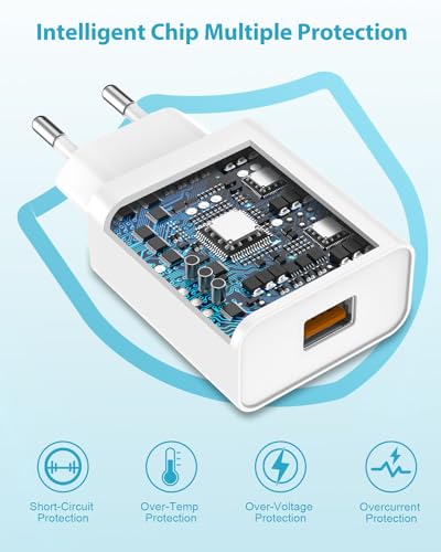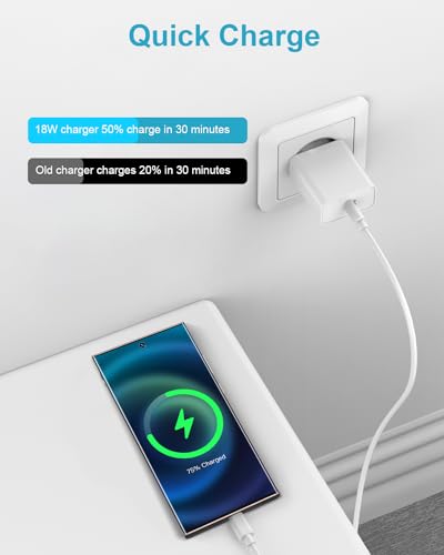 Chargeur USB large compatibilité : bloc d’alimentation USB Lemsen 18 W avec câble de charge USB C, compatible avec la plupart des appareils Samsung, y compris Samsung S23 Ultra/S23+/S23/S22/S22 Plus/S22 Ultra/S21/S21 Plus/S21 Ultra/S21 Ultra/S21 FE/S20/S20 Plus/S20 Ultra/S20 FE/Note 20/S10. Plus/S10/S9/S8/A13/A33/A53/A54 5G, Huawei, Xiaomi, Switch et autres appareils électroniques USB. Bloc d’alimentation USB sûr et fiable : le boîtier de la prise USB est fabriqué en matériau ABS de haute qualité et est équipé d’une variété de mesures de sécurité et d’une puce de sécurité intelligente pour maximiser la protection de vos appareils contre les surcharges, les surtensions, les surintensités et les courts-circuits. Ce chargeur Samsung de Samsung vous permet de charger votre appareil partout en toute sécurité. Chargeur rapide de 18 W avec charge rapide 3.0 : prise adaptateur USB et câble de charge rapide USB C de 2 m prend en charge la technologie Quick Charge 3.0 avec une puissance maximale de 18 W pour chargeur Samsung. Il ne faut qu’une heure pour charger de 0 à 70 %. 3 fois plus rapide que les chargeurs normaux, ce qui vous permet d’économiser 1 heure. Transfert de données et charge simultanés : le câble de charge rapide USB C de 2 m a une vitesse de 480 Mbps pour transférer des données, charger et transférer des données en même temps. Facilite et accélère votre travail. Prise USB petite et portable : notre chargeur rapide USB est compact et pratique. Avec sa taille compacte, le bloc d’alimentation USB vous accompagne en voyage. Si vous avez des problèmes avec la prise de charge USB C, n’hésitez pas à nous contacter. Nous vous répondrons dans les 24 heures