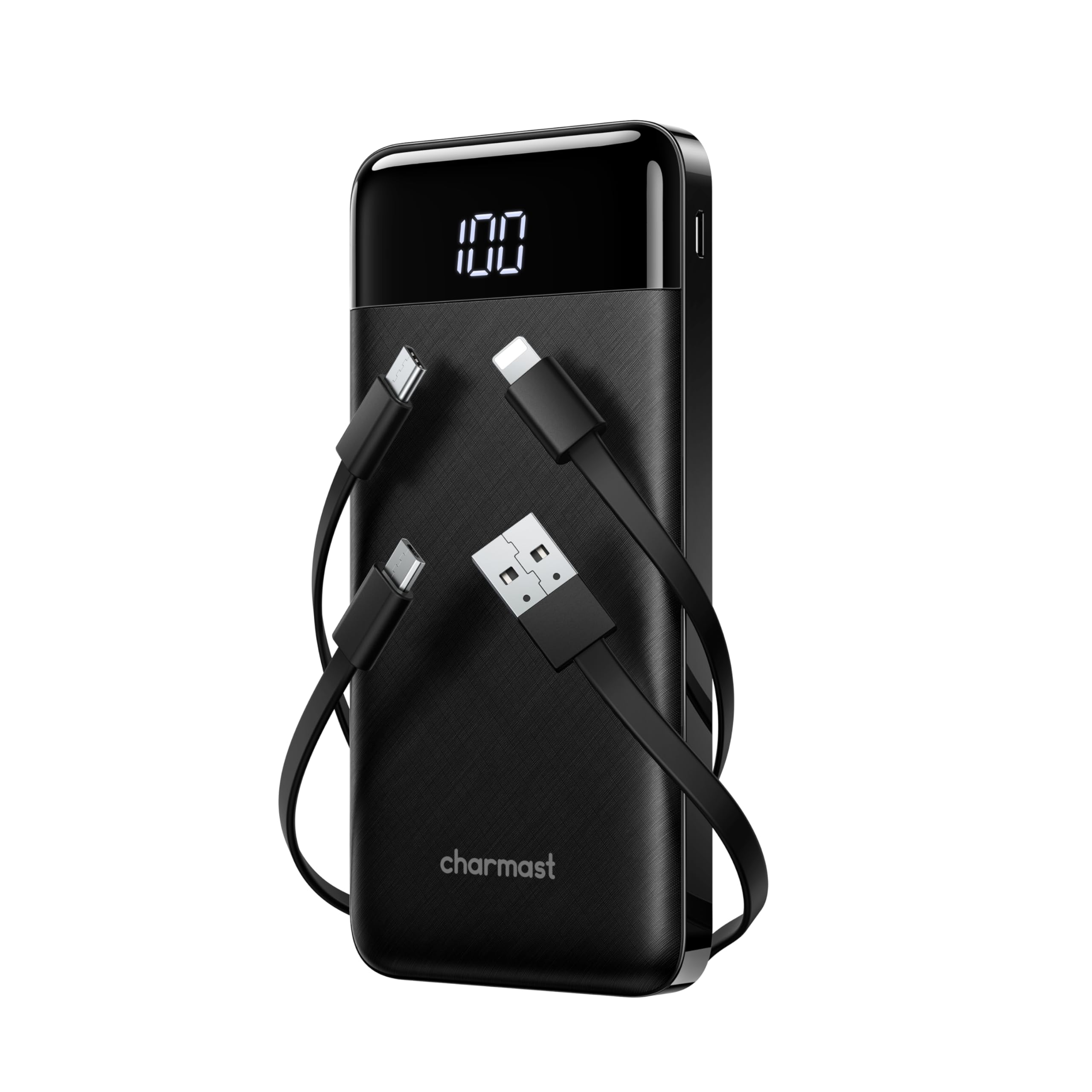 🔋Batterie externe avec 4 câbles du chargement intégrés: Grâce aux câble intégrés de cette batterie, il n’y a plus de désordre de câbles, branchez et chargez. 🔋6 sorties et 3 entrées: Avec 6 sorties et 3 entrées, ce power bank prend en charge le chargement pour 6 appareils en même temps; et aussi 3 choix à la recharge pour la batterie. 🔋Chargeur externe en capacité de 10000mAh: Cette batterie externe est compatible avec Apple, Samsung et tous les autres modèles de téléphones portables du marché. La capacité de 10 000 mAh peut charger plusieurs fois les modèles de téléphones mobiles suivants : iPhone 11 pour 2 fois, iPhone 12 pour 2,3 fois et Samsung S21 pour1,5 fois. 🔋Idéal pour la vie quotidienne: Dimensions: 144.34*66.9*17.7mm; Poids: 240g. Leger et facile à transporter, on peut facilement mettre la batterie portable dans un sac à main femme. 🔋Ecran digital à DEL: Avec un écran digital, l’affichage précis de la batterie de 0%-100% peut nous rappeler la recharge pour la batterie à temps. 🔋Liste de l’emballage: 1 x Power Bank 10000mAh ; 1 x notice en français; 1 x sac de rangement. 🔋Service : Service après-vente de 24 mois toujours actif.