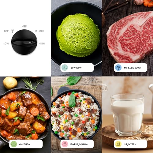 Design compact : Le micro-ondes COMFEE’ CMO-MP012OC(BK) offre une capacité de 19L et une puissance de 700W avec 5 niveaux de puissance réglables. Son format compact permet de placer une assiette de 273 mm ou une pizza de 10 pouces sur son plateau tournant de 245 mm. Décongélation uniforme : ce micro-ondes peut maintenir une température uniforme dans différentes portions d’aliments, garantissant ainsi un résultat de décongélation uniforme. Économie d’Énergie Remarquable: Avec la technologie REVOLUTION WAVE, l’efficacité de conversion d’énergie s’accroît de 20,5 % par rapport aux micro-ondes traditionnels. Faible Bruit: Le four à micro-ondes Comfee CMO-MP012OC(BK) a réussi à réduire le niveau sonore à 57 dB(A), ce qui est inférieur à celui d’une conversation normale. Léger et stable : équipé de tapis antidérapants sur le fond, le micro-ondes est aussi stable qu’un roc malgré son poids léger.