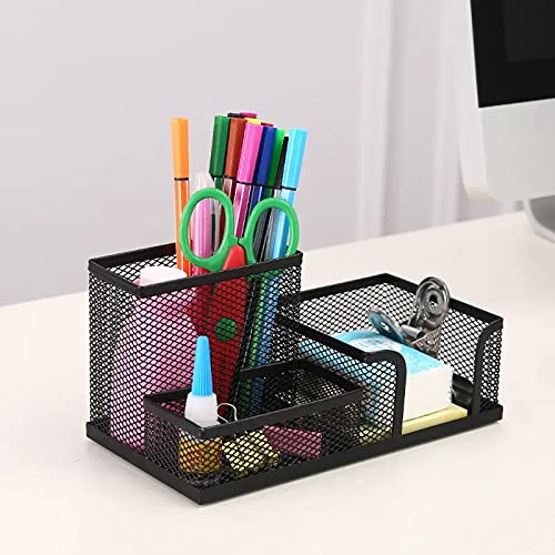 Gardez vos stylos, crayons et agrafeuse en ordre avec cet organiseur de bureau en maille métallique noire. Organisateur très élégant et durable. Le porte-stylos à plusieurs sections permet de classer et de trouver facilement vos stylos mignons, crayons, blocs-notes, stylos Bic, accessoires de bureau… Économisez de l’espace sur votre bureau avec cet organiseur de bureau compact, parfait pour toutes tailles de tables. Classeurs de bureau de grande qualité. Idéal pour la maison, le bureau ou la salle de classe – organisez votre matériel scolaire et de bureau avec style. Comprend également un classeur pour vos blocs-notes. Design élégant et durable – fabriqué avec des matériaux de haute qualité pour résister à une utilisation quotidienne. Le meilleur plateau de bureau pour organiser votre matériel de bureau et de papeterie.