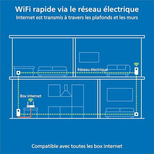 Kit de démarrage pour créer votre réseau CPL Magic avec 2 adaptateurs : optimal pour Internet jusqu’à 2 étages Internet tout simplement à partir de la prise électrique : l’adaptateur utilise les lignes électriques de la maison et apporte le WiFi dans chaque pièce – sans aucun enchevêtrement de câbles Un WiFi rapide pour tout le plaisir : regarder des films en streaming, jouer ou travailler dans un bureau à domicile – avec jusqu’à 3.000 Mbits/s, tout est fluide Deux connexions Gigabit : Le téléviseur, la console de jeu ou le PC peuvent être connectés directement par câble – pour une connexion extra stable Brancher et c’est parti : L’installation est un jeu d’enfant, l’adaptateur fonctionne presque tout seul et le système peut être étendu à tout moment