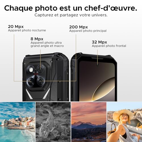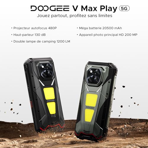【Système de Refroidissement + Écran Intégré (854 x 480, 100 Lumens, Autofocus) 】: Grâce à son système d’affichage avancé, ce téléphone portable incassable DOOGEE offre des fonctionnalités d’affichage stables et étendues. Doté d’une résolution de 854 x 480, d’une luminosité de 100 lumens et d’une table lumineuse automatique, il offre instantanément des images d’une netteté optimale, idéales pour les partages entre amis ou les réunions informelles. Le système de refroidissement prévient efficacement la surchauffe et maintient les performances de ce téléphone portable incassable même en utilisation intensive, garantissant une expérience fluide et sûre 【Deux Lumières Réglables de 1200 Lumens + Effets Lumineux】: Notre smartphone incassable Android conçu pour les environnements extrêmes et l’extérieur, est équipé de deux lumières réglables de 1200 lumens. Cet éclairage puissant est idéal pour le camping nocturne, le nettoyage nocturne, les urgences ou la navigation à l’abri des regards. Le réglage de la luminosité s’adapte à toutes les situations : de douce pour la lecture à intense pour signaler la position. La luminosité est réglable et personnalisable (appels, notifications, musique, intensité lumineuse et batterie faible). Ce système d’éclairage polyvalent améliore la praticité de ce téléphone portable 5G pour l’extérieur et le quotidien 【Processeur Dimensity 7300 + 36 Go de RAM + 512 Go de ROM】: Le téléphone DOOGEE V Max Play est équipé du processeur octa-core MediaTek Dimensity 7300 gravé en 4 nm. Ce chipset puissant garantit des performances fluides pour les applications multitâches complexes, comme l’utilisation d’applications modernes, la navigation web et d’autres activités ludiques. De plus, 36 Go de RAM (16 Go + 20 Go) LPDDR5 et 512 Go de ROM uMCP offrent un espace de stockage important pour les documents, les applications et les contenus, évitant ainsi l’utilisation d’appareils externes. Ce téléphone Android 5G 2025 est conçu pour l’efficacité : aucun ralentissement ni blocage, même en utilisation prolongée 【Batterie 20 500 mAh + Batterie rapide 45 W et charge inversée 10 W】: Ce telephone portable incassable 5G est doté d’une batterie supplémentaire de 20 500 mAh, idéale pour le streaming multimédia, la navigation web, le chat ou l’utilisation d’applications professionnelles, sans nécessiter d’utilisation fréquente. La technologie de charge rapide 45 W recharge la batterie en quelques minutes seulement, tandis que la charge inversée 10 W fournit une alimentation de secours à votre smartphone ou bracelet. Ce telephone portable 2025 est conçu pour les situations mobiles : il assure une connectivité ininterrompue, même dans les zones sans prise de courant 【Écran 6,78 pouces FHD+ 120 Hz + Déverrouillage sécurisé + Triple caméra IA (200 Mpx, 8 Mpx, 20 Mpx) + 32 Mpx】: Ce smartphone incassable est équipé d’un écran IPS FHD+ de 6,78 pouces sans encoche, offrant une expérience visuelle fluide et nette grâce à sa fréquence d’affichage étendue. Mise à niveau vers 120 Hz. Double sécurité grâce à la reconnaissance faciale et latérale, précis même avec des gants ou en pleine lumière. Triple caméra IA (200 Mpx principale, 8 Mpx grand angle/macro, 20 Mpx nocturne) et 32 Mpx frontale pour capturer des détails et des notes impeccables. Idéal pour les documents et la vie quotidienne 【Widevine L1, Déverrouillage, WiFi6E et NFC】: Notre telephone incassable 5G Doogee comprend des fonctions multifonctionnelles : identification par empreinte digitale, déverrouillage par reconnaissance faciale, Widevine L1, NFC, WiFi6E, Bluetooth 5.4 et prise en charge PPT. Le système de déverrouillage garantit un accès rapide et sûr, protégeant ainsi vos données personnelles. Widevine L1 permet le streaming HD/4K, tandis que NFC prend en charge Google Pay pour les paiements par contact gratuits. WiFi6E et Bluetooth 5.4 offrent une connectivité stable : navigation rapide dans la zone concernée, transfert de fichiers rapide et connexion aux écouteurs/accessoires sans interruption 【Support pour Projecteur + Haut-Parleur Bluetooth】: Notre Doogee V Max PLAY smartphone incassable est livré avec deux accessoires pratiques : un trépied rotatif à 360° et fixation magnétique, ainsi qu’un haut-parleur Bluetooth magnétique. Il est stable sur tous les smartphones, sans utiliser les accessoires intégrés, idéal pour projeter des films ou des présentations en camping, à la campagne ou dans les espaces publics. Le haut-parleur Bluetooth magnétique se fixe facilement à l’appareil, offrant un son clair et puissant avec une connexion stable, idéal pour écouter de la musique en public ou pour communiquer en groupe
