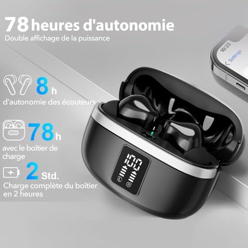 🦄【Configuration sans effort】Prend en charge les modes mono et stéréo, vous permettant de partager les écouteurs avec vos amis et votre famille. 🌊【Confort sans précédent】Livré avec 3 tailles d’embouts en silicone de rechange pour un ajustement sûr avec différents types de conduits auditifs. 🎉【Affichage LED intelligent】L’affichage numérique LED premium montre la batterie restante en un coup d’œil. 🔋【60 heures d’autonomie】Avec un design économe en énergie, les écouteurs peuvent durer 6-7 heures avec une charge complète et jusqu’à 60 heures lorsqu’ils sont utilisés avec l’étui de charge à 60% du volume. 🚀【Charge USB-C ultra-rapide】10 minutes de charge offrent 1 heure d’utilisation. 💧【Étanchéité IPX7】Utilise une technologie d’étanchéité de niveau IPX7 pour protéger contre les éclaboussures, la sueur et l’immersion. Convient pour le sport et l’utilisation sous la pluie. 🙎🏻♀️【Engagement et garantie】Lorsque vous n’êtes pas satisfait à 100%, le service client officiel de la marque fera tout son possible pour vous servir de tout cœur.