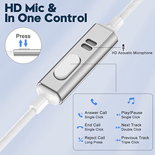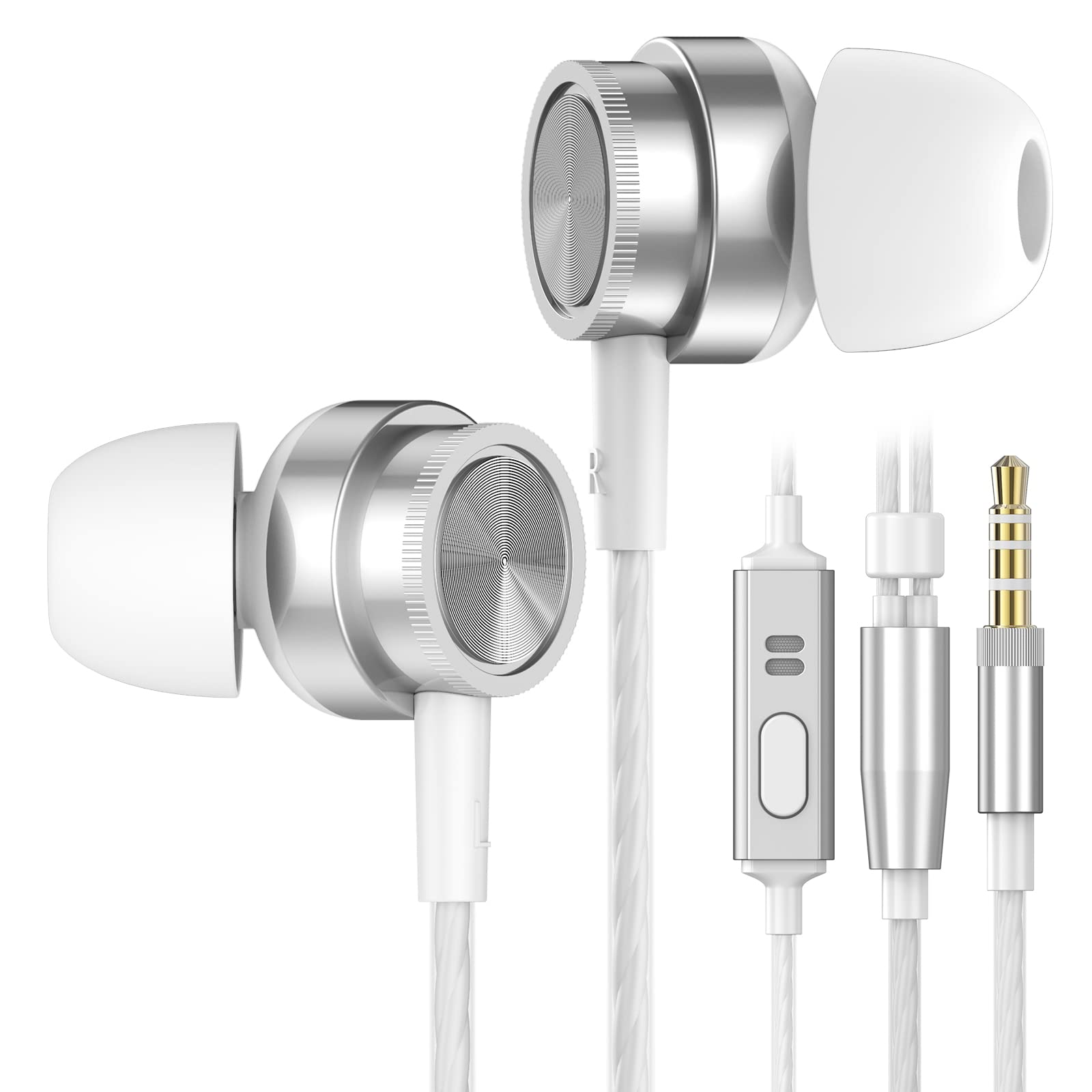 Son stéréo Hi-Fi et clair : le design intra-auriculaire des écouteurs réduit efficacement les bruits ambiants externes. Haut-parleurs haute performance intégrés et large gamme de fréquences, qui élargissent la gamme de fréquences de la chaîne hi-fi, vous permettant de profiter de la musique stéréo de haute qualité, apportant une expérience musicale parfaite. Bouton multifonction et microphone de haute qualité : les écouteurs filaires avec microphone HD et contrôleur vous permettent de répondre/mettre fin aux appels, de lire/mettre en pause, de jouer de la musique suivante/précédente avec le casque, vous n’avez pas besoin de toucher votre appareil pour effectuer une variété de fonctions essentielles. Design confortable et ergonomique : les écouteurs filaires sont conçus de façon ergonomique, ce qui peut s’adapter efficacement à l’oreille parfaitement sans tomber, confortables, stables et faciles à porter. Ces écouteurs sont équipés de 3 écouteurs en caoutchouc de tailles différentes, vous pouvez sélectionner le meilleur ajustement pour votre forme d’oreille personnelle. Large compatibilité : les écouteurs intra-auriculaires sont compatibles avec une gamme d’appareils électroniques, iPhone, Samsung Galaxy, Sony Xperia, ordinateur portable, tablette, vous pouvez brancher ces écouteurs dans pratiquement n’importe quel appareil avec une prise casque de 3,5 mm (certains appareils peuvent nécessiter un adaptateur) Qualité supérieure et durable : les écouteurs intra-auriculaires sont fabriqués en métal de haute qualité, et le câble adopte un design de protection double couche dégradé noir et blanc, qui est durable et pas facile à casser, améliorant la durabilité.