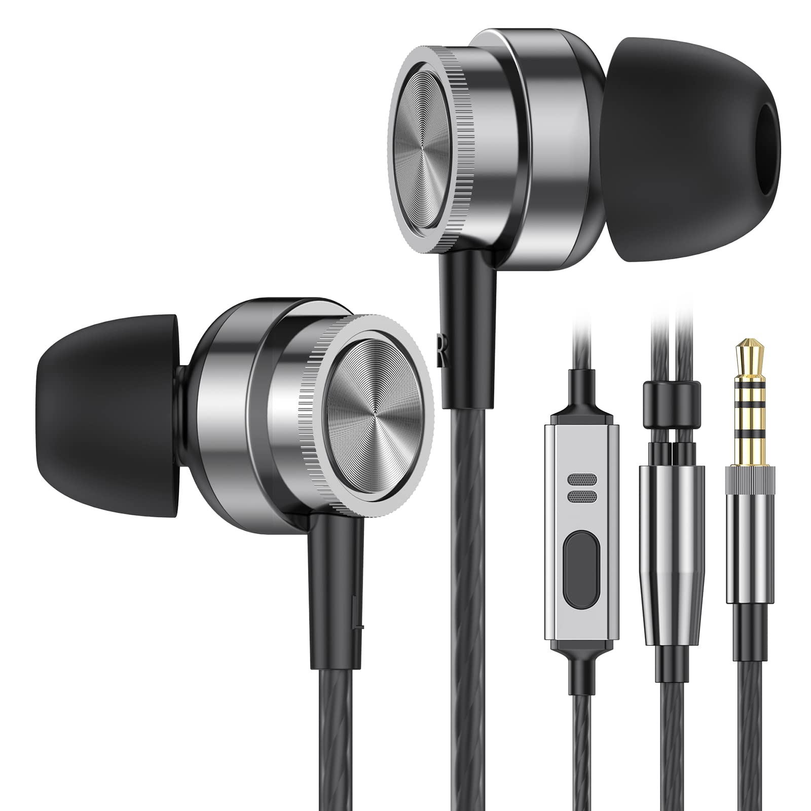 Son stéréo Hi-Fi et clair : le design intra-auriculaire des écouteurs réduit efficacement les bruits ambiants externes. Haut-parleurs haute performance intégrés et large gamme de fréquences, qui élargissent la gamme de fréquences de la chaîne hi-fi, vous permettant de profiter de la musique stéréo de haute qualité, apportant une expérience musicale parfaite. Bouton multifonction et microphone de haute qualité : les écouteurs filaires avec microphone HD et contrôleur vous permettent de répondre/mettre fin aux appels, de lire/mettre en pause, de jouer de la musique suivante/précédente avec le casque, vous n’avez pas besoin de toucher votre appareil pour effectuer une variété de fonctions essentielles. Design confortable et ergonomique : les écouteurs filaires sont conçus de façon ergonomique, ce qui peut s’adapter efficacement à l’oreille parfaitement sans tomber, confortables, stables et faciles à porter. Ces écouteurs sont équipés de 3 écouteurs en caoutchouc de tailles différentes, vous pouvez sélectionner le meilleur ajustement pour votre forme d’oreille personnelle. Large compatibilité : les écouteurs intra-auriculaires sont compatibles avec une gamme d’appareils électroniques, iPhone, Samsung Galaxy, Sony Xperia, ordinateur portable, tablette, vous pouvez brancher ces écouteurs dans pratiquement n’importe quel appareil avec une prise casque de 3,5 mm (certains appareils peuvent nécessiter un adaptateur) Qualité supérieure et durable : les écouteurs intra-auriculaires sont fabriqués en métal de haute qualité, et le câble adopte un design de protection double couche dégradé noir et blanc, qui est durable et pas facile à casser, améliorant la durabilité.