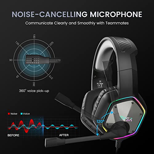 [Son Surround 7.1 – Plug and Play] Le casque gaming PC avec effets son surround 7.1 vous permet d’obtenir un positionnement son précis dans le jeu. Pas besoin d’installer de pilotes, il suffit de brancher USB pour profiter d’un son surround 7.1 pour une expérience de jeu immersive. [Pilote 50MM et lumières RVB froides] Les casque pilotes en néodyme de 50 mm de haute précision vous offrent une expérience de jeu immersive avec un son incroyablement réaliste, où vous pouvez clairement ressentir chaque note pour une expérience de jeu exceptionnelle. Les casque lumières RVB cool créent une atmosphère super cool et ludique pour vous, vous offrant une expérience de jeu plus immersive. [Conception Ergonomique Confortable] Les casque gamer cache-oreilles en protéines à mémoire douce de qualité supérieure garantissent un confort ultime, même pendant une période prolongée. De plus, il y a un confort absolu pendant les longues sessions de jeu avec un bandeau réglable conçu pour une répartition équilibrée du poids et une force de serrage réduite. Les câbles extrêmement résistant de 2,2 m vous permet de profiter de votre jeu sans limite. [Effet Vocal Clair] Le casque audio pour PS4/PS5 réduit les bruits de fond gênants et garantit une communication forte et cristalline grâce à son microphone haute sensibilité réglable à 120°. La technologie de réduction du bruit omnidirectionnelle du casque gamer vous permet de profiter d’un son de qualité lorsque vous jouez ou discutez dans le jeu. [Compatibilité Multiplateforme] Ce casque avec micro professionnel est compatible avec PC (Windows 7/8/10), les consoles PS4 / PS5, les ordinateurs portables et autres appareils avec des ports audio USB. Nous offrons un support client 24h/24 et une garantie de 2 ans. Nous ferons de notre mieux pour être responsables de votre expérience d’achat.