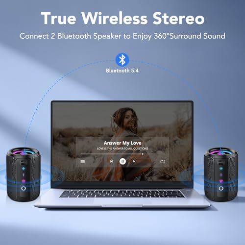 【Son exceptionnel et durable】: Enceinte bluetooth puissante utilise une batterie lithium-ion rechargeable de 1800 mAh, qui peut être chargée en seulement 3 à 4 heures, et le temps de lecture peut atteindre jusqu’à 12 heures (le temps de lecture dépend de la lumière, du volume). Son sans distorsion de 15W pour une expérience d’écoute immersive. Avec son mini corps et son excellente autonomie, il est sans aucun doute idéal pour les activités de plein air. 【Conception portable】: Enceinte portable est léger, seulement 382 grammes, facile à transporter, que vous le teniez d’une seule main, que vous l’accrochiez à l’extérieur de votre sac à dos ou que vous le mettiez dans une valise, il ne vous ajoutera pas de fardeau. Mini enceinte bluetooth est très approprié pour la randonnée en plein air ou pour discuter avec des amis sous le ciel nocturne en camping, et la bonne qualité sonore est toujours avec vous, créant mieux une atmosphère et doublant votre bonheur. 【IPX7 étanche】 : Le haut-parleur bluetooth a un effet étanche IPX7, vous n’avez donc pas peur des défis extérieurs. Qu’il s’agisse de randonnée, de camping ou d’une fête sur la plage, il peut le gérer avec facilité. Grâce à ses excellentes propriétés d’étanchéité, enceinte bluetooth exterieur reste sûr et sécurisé même dans des environnements humides, garantissant que votre voyage musical n’est pas affecté par les éléments. 【Connexion stable et effets sonores stéréos】: Enceinte bluetooth utilise la technologie Bluetooth 5.4 avancée, qui peut fournir des connexions rapides et stables, et est compatible avec la plupart des appareils Bluetooth, tels que les téléphones portables, les tablettes, les ordinateurs portables, etc. Lorsque deux enceintes TIKSOUNDS sont couplées avec succès, elles peuvent produire un son surround à 360°, vous offrant un festin d’écoute immersif pour un plaisir d’écoute inégalé. 【RGB Color Light Show】 : Le petite enceinte bluetooth vous apporte la combinaison parfaite de musique et de lumière et d’ombre. Lorsque la musique joue, les lumières colorées dansent, capturant avec précision chaque battement et libérant des veines de lumière palpitantes entre les scintillements, ajoutant un charme infini à votre temps musical, particulièrement adapté pour créer une atmosphère de fête.