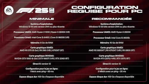 EA SPORTS F1 25 est le jeu vidéo officiel du 2025 FIA Formula One World Championship. L’édition standard pour PC est livrée sous la forme d’un code de téléchargement. Jouable uniquement sur PC. L’Edition Standard contient le mode Mon écurie remodelé ainsi que le troisième chapitre palpitant de Point de…