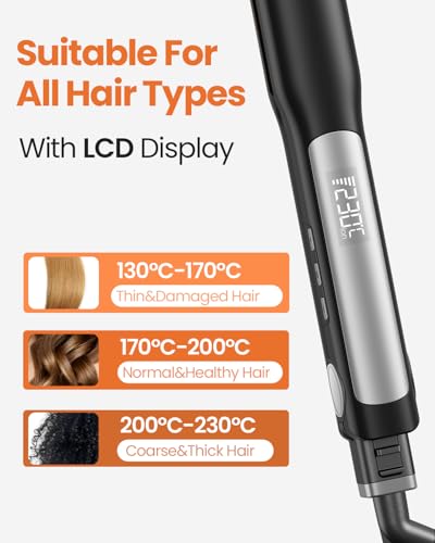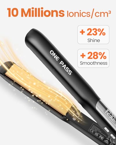 【Lisseur en un seul passage】le lisseur cheveux en titanium est 150 % plus lisse que la céramique, ce qui facilite le coiffage; La technologie de compensation de température HeatSyncX réduit la dérive de température, assure une chauffe uniforme des racines jusqu’aux pointes en un seul passage. 【2X plus chauffage rapide】Faszin lisseur professionnel est doté de la technologie de chauffe HeatShotZ et de l’élément chauffant MCH, le fer à repasser chauffe jusqu’à 180 °C en 20 S, pour des résultats brillants même dans la précipitation. 11 niveaux de réglage de la température (130°C-230°C) pour ajuster rapidement. 【Des dizaines de millions d’ions】Le lisseur professionnel ionique Faszin, avec ses 10 millions d’ions négatifs/cm³, contribue à augmenter la brillance des cheveux de 23 %, à les lisser de 28 % et à réduire les frisottis. Appuyez brièvement sur le bouton d’alimentation pour activer/désactiver la fonction ionique. 【Facile à utiliser】La fer a lisser avec plaque de 30*110mm, 39% plus grand que les autres, de large couvre plus de surface. La plaque flottante 3D est flexible et s’incline à différents angles, elle peut être constamment ajustée pour s’adapter à la coiffure que vous créez. 【Conçu par Faszin】Conçu par les meilleurs ingénieurs allemands, à l’écoute des clients: l’écran LCD est clair et facilement lisible; L’arrêt automatique après 30 minutes est utilisation en toute sécurité; la double tension est compatibilité pour voyages; le cordon de 2,2 mètres orientable à 360° permet de coiffer les cheveux sous n’importe quel angle.