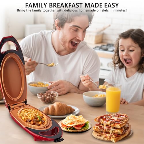 Design innovant à bascule pour une cuisson facile des deux côtés : Cette poêle électrique est dotée d’un design innovant à bascule qui garantit un extérieur croustillant et un intérieur tendre et juteux. Que vous prépariez des pizzas, des grillades ou des omelettes, ajoutez simplement vos ingrédients, fermez le couvercle et commencez la cuisson pour une cuisson rapide et simultanée des deux côtés, idéale pour les vies modernes et actives. Plus besoin de retourner les aliments, ce qui réduit le nombre d’étapes et rend la cuisson plus simple et plus efficace. Cuisson rapide et facile, économe en énergie : Pas besoin de gaz, sa conception basse consommation rend cette poêle électrique à la fois écologique et économique. Un voyant rouge et vert indique clairement le début de la cuisson, et la poignée offre une sécurité accrue pour une tranquillité d’esprit optimale. Que vous soyez novice ou expert, vous pouvez préparer rapidement et facilement de délicieux repas et savourer vos plats. Commandes intuitives et conception sécurisée : Le voyant rouge et vert intuitif garantit une utilisation facile. La poignée Cool-Touch prévient les brûlures et garantit la sécurité pendant l’utilisation. Son design compact facilite son rangement, ce qui la rend idéale pour les cuisines à espace limité. Son nettoyage est également très facile. La surface antiadhésive se régénère d’un simple coup de chiffon, pour un gain de temps et d’efforts. Surface de cuisson antiadhésive, saine et sans huile : La technologie avancée de nos poêles antiadhésives permet une cuisson sans huile, à la fois saine et facile à nettoyer. Savourez des plats dignes d’un chef en seulement 5 minutes. Petit-déjeuner léger ou dîner complet, cette poêle électrique répond à tous vos besoins. Après la cuisson, l’appareil se replie pour un gain de place précieux. Inclut un livre de recettes complet pour explorer une cuisine variée : Découvrez une variété de recettes délicieuses et faciles à réaliser, notamment des pizzas, des rôtis, des ragoûts, du poisson, des accompagnements, des desserts, des grillades, des gratins, des pâtes et des saucisses. Que ce soit pour les réunions de famille ou les repas quotidiens, ces recettes vous permettront de créer facilement des plats savoureux qui raviront vos proches.