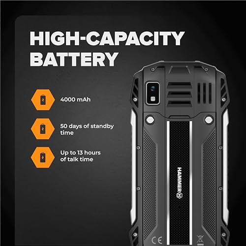 Boîtier blindé IP68 : Hammer Power Plus résiste aux chutes de 1,5 m, à la poussière pénétrante et à l’immersion complète grâce à l’étanchéité IP68 et à la norme militaire MIL-STD-810H. La construction durable et scellée protège l’électronique et l’écran des réparations coûteuses. Emmenez-le avec vous dans des endroits où les smartphones classiques ont depuis longtemps abandonné. Vous travaillez sans soucis car votre téléphone fait tout. Batterie de 4000 mAh : la batterie durable de 4000 mAh offre jusqu’à 1200 heures de veille ou 12 heures de temps de conversation. Grâce à l’USB-C, il est rapidement rechargé et compatible avec les câbles modernes. Tandis que les autres appareils restent silencieux, vous restez accessible. Parfait pour une utilisation de plusieurs jours ou de longs quarts de travail. Gros boutons : les boutons antidérapants en caoutchouc peuvent être utilisés en toute sécurité même avec des gants de travail épais ou des doigts sales. Lampe torche et appareil photo : la puissante LED éclaire immédiatement les caves, les arbres ou le compartiment moteur – Un clic suffit. La caméra intégrée 2MP documente les dommages, les progrès ou les lectures en quelques secondes. Vous économisez du matériel et du temps supplémentaires. Tout est disponible directement dans l’appareil. Double SIM + microSD : deux emplacements nano SIM séparent les appels privés de la téléphonie professionnelle sans avoir besoin d’un deuxième appareil. Un emplacement microSD séparé prend en charge les cartes jusqu’à 32 Go pour les photos, la musique ou les documents techniques. Plus de flexibilité au quotidien. Vous pouvez garder une vue d’ensemble à tout moment.